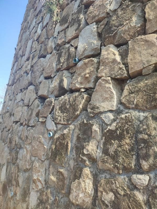 • Supported by a 7m high reinforced stone wall